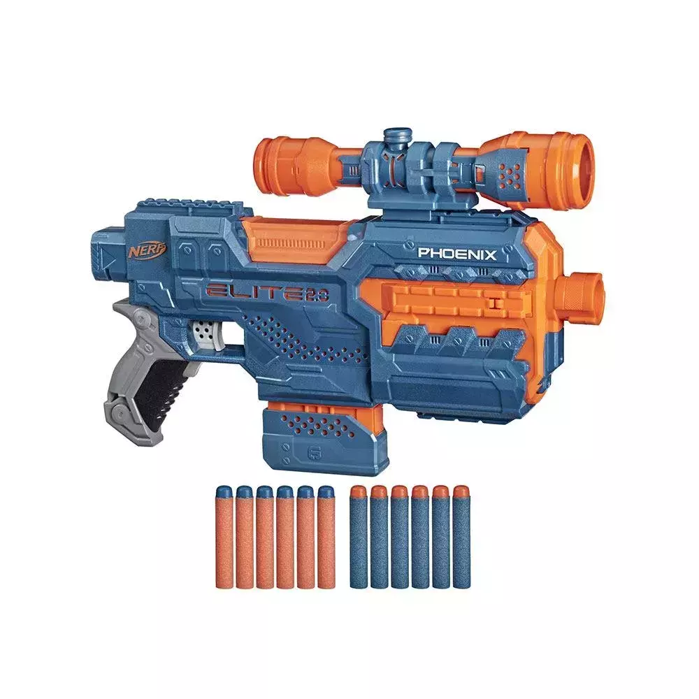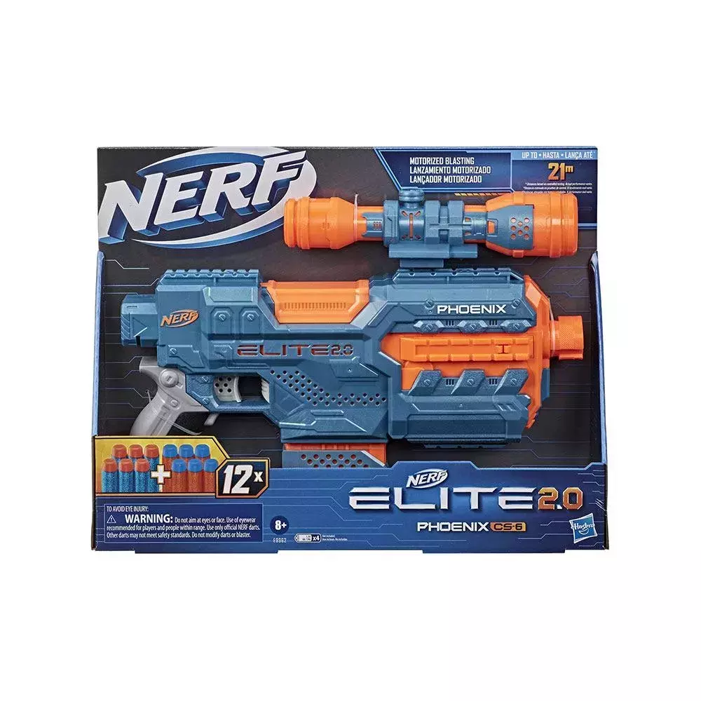 O lançador Nerf Elite 2.0 Phoenix CS-6 possui 5 trilhos táticos, encaixe para tubo frontal e encaixe para apoio para personalizar o lançador nas aventuras Nerf. O lançador possui um clip para 6 dardos, sendo possível lançar um dardo por vez. Possui botão turbo para ativar o motor. Inclui 12 dardos oficiais Nerf - o suficiente para carregar completamente o clip de 6 dardos e manter outros 6 nas proximidades para recargas. Óculos recomendados (não incluídos). Tubo frontal e apoio não incluídos. Requer pilhas.